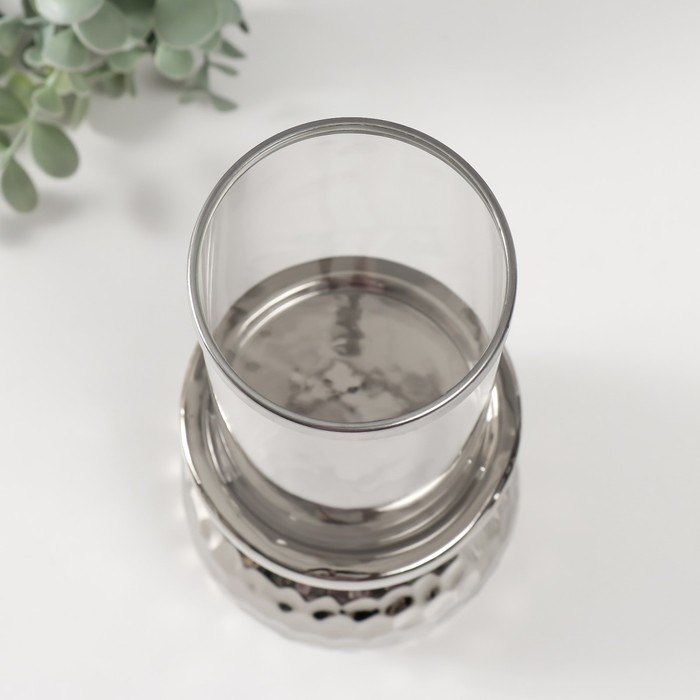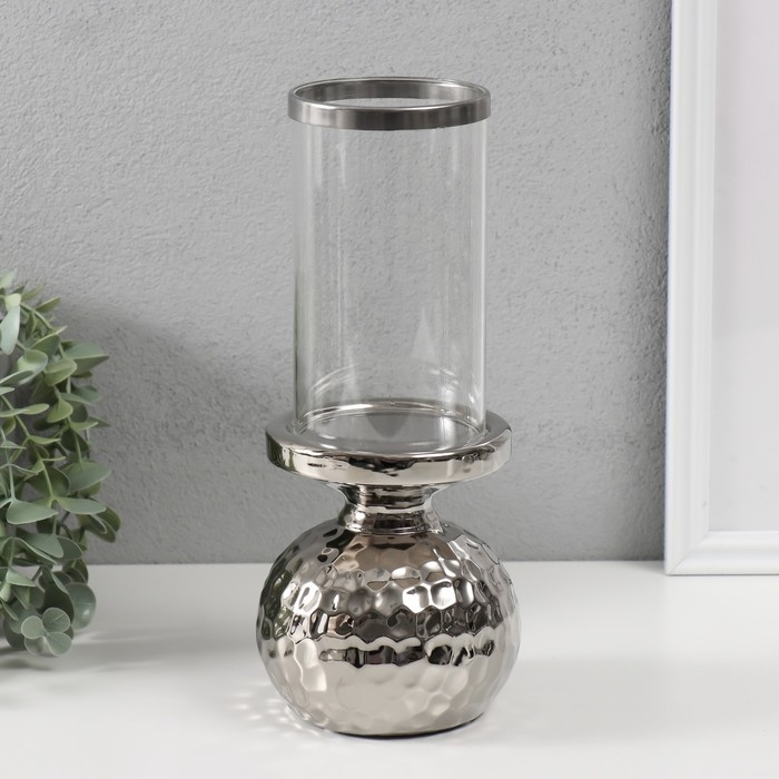 Подсвечник керамика, стекло на 1 свечу "Лоджуар" d=8 см серебро 10,5х10,5х26 см