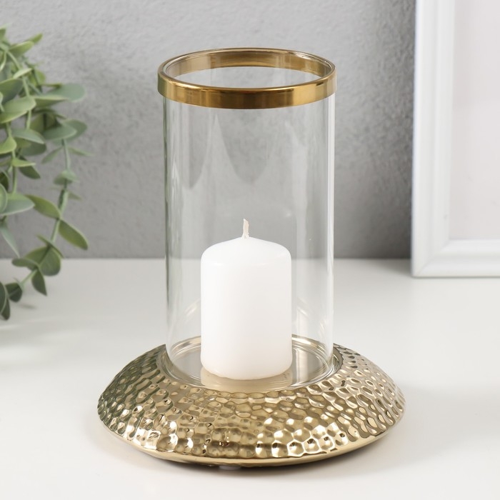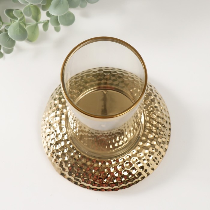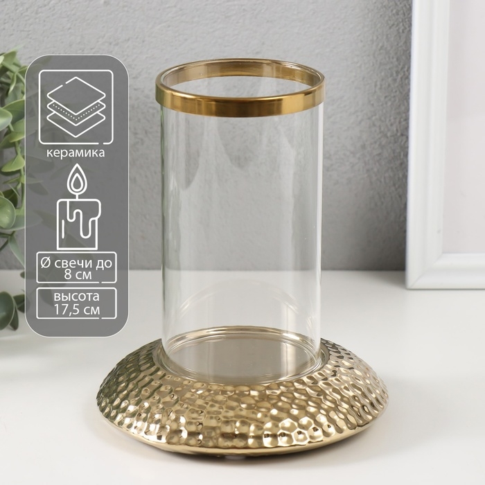 Подсвечник керамика, стекло на 1 свечу "Верна" d=8 см золото 14,5х14,5х17,5 см