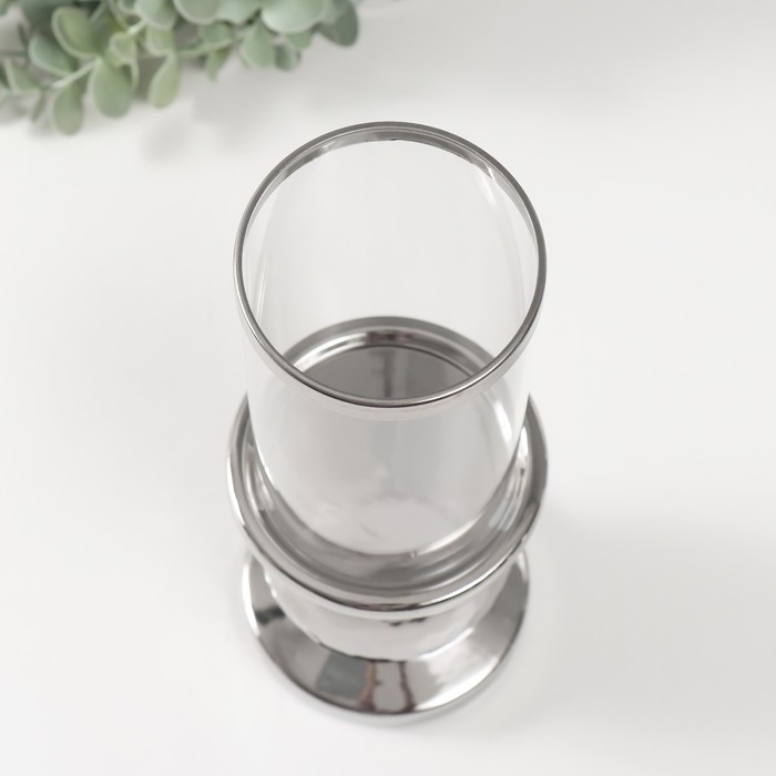 Подсвечник керамика, стекло на 1 свечу "Нуар" d=8 см серебро 10х10х27 см