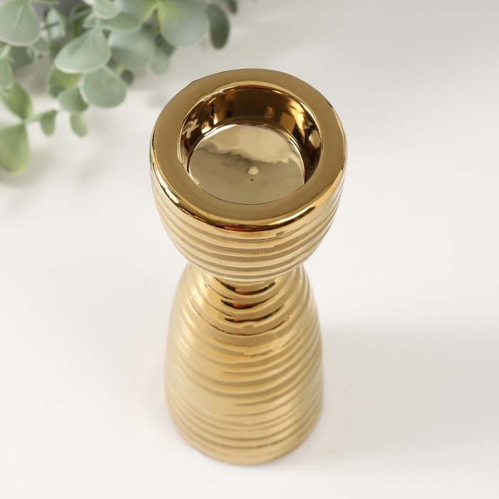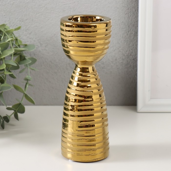 Подсвечник керамика на 1 свечу "Зебра" d=4 см золото 6,5х6,5х18 см