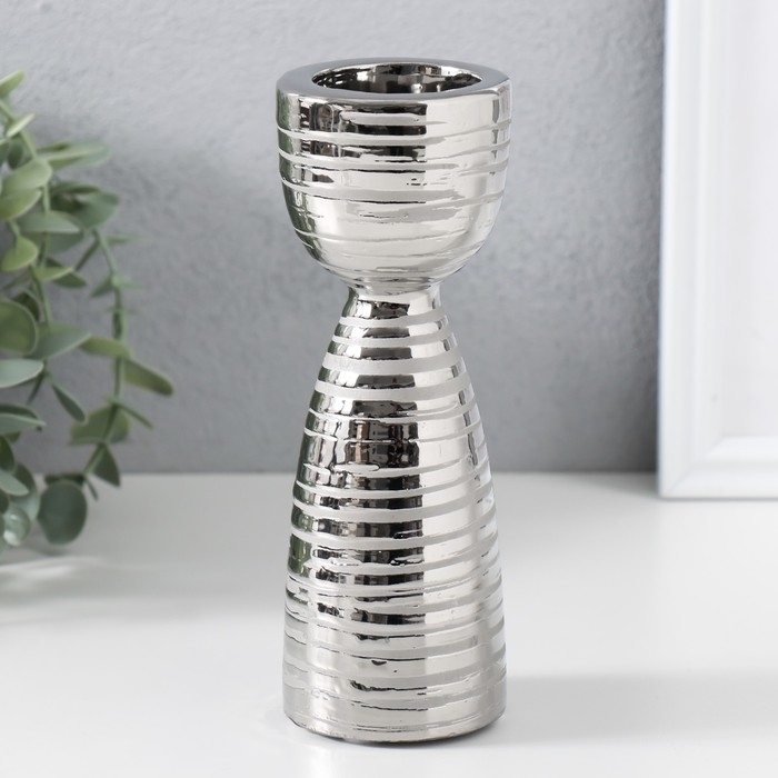 Подсвечник керамика на 1 свечу "Зебра" d=4 см серебро 6,5х6,5х18 см