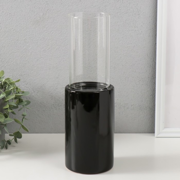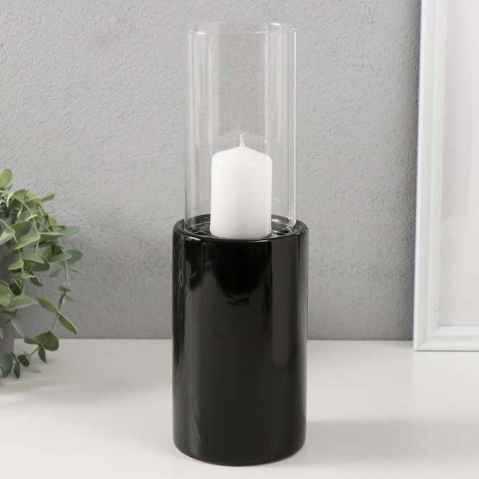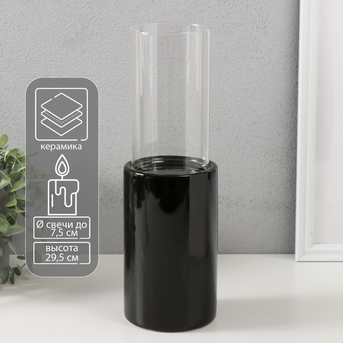 Подсвечник керамика, стекло на 1 свечу "Хром" d=7,5 см чёрный 9,2х9,2х29,5 см
