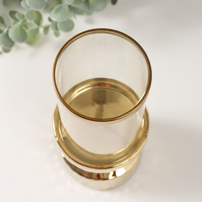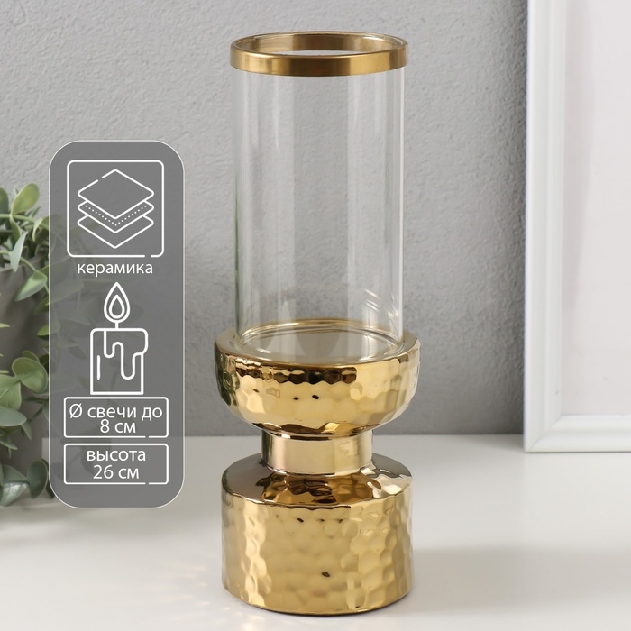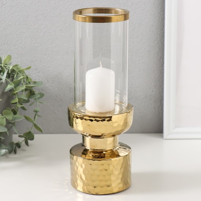 Подсвечник керамика, стекло на 1 свечу "Омут" d=8 см золото 9,5х9,5х26 см