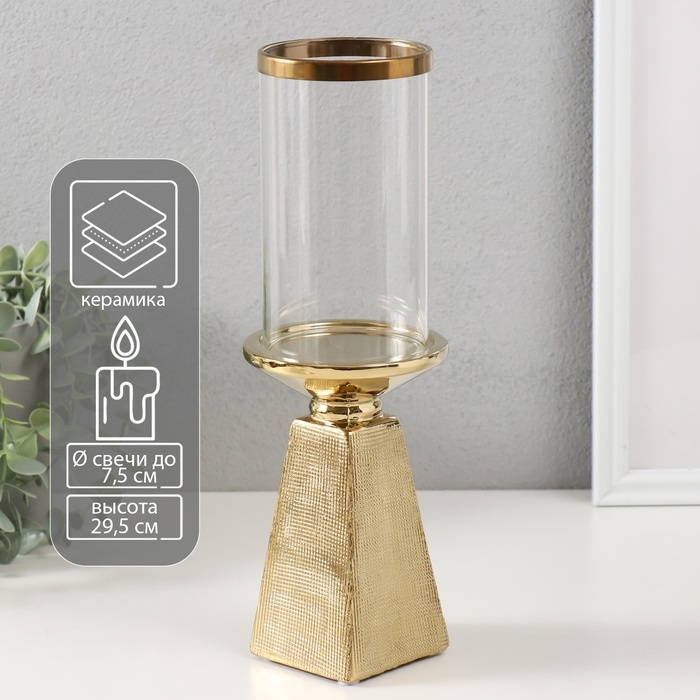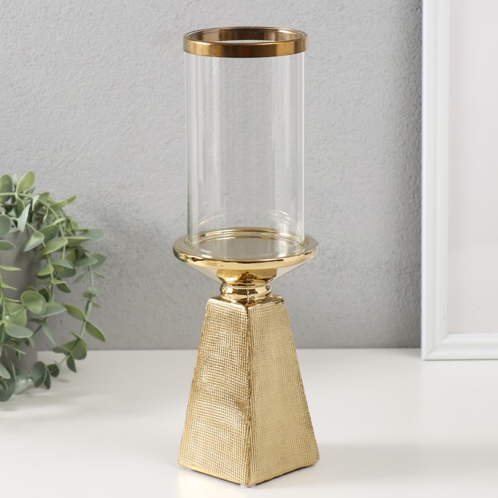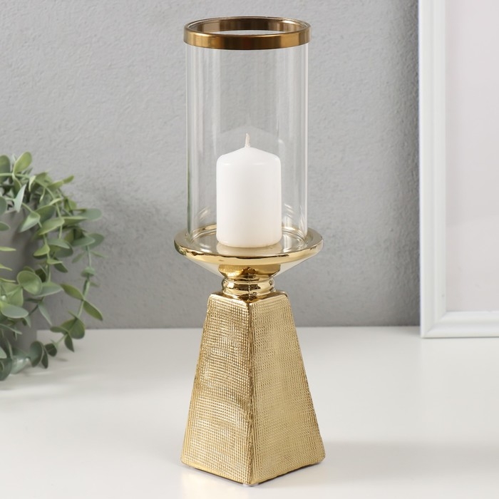 Подсвечник керамика, стекло на 1 свечу "Буэно" d=7,5 см золото 9,5х9,5х29,5 см