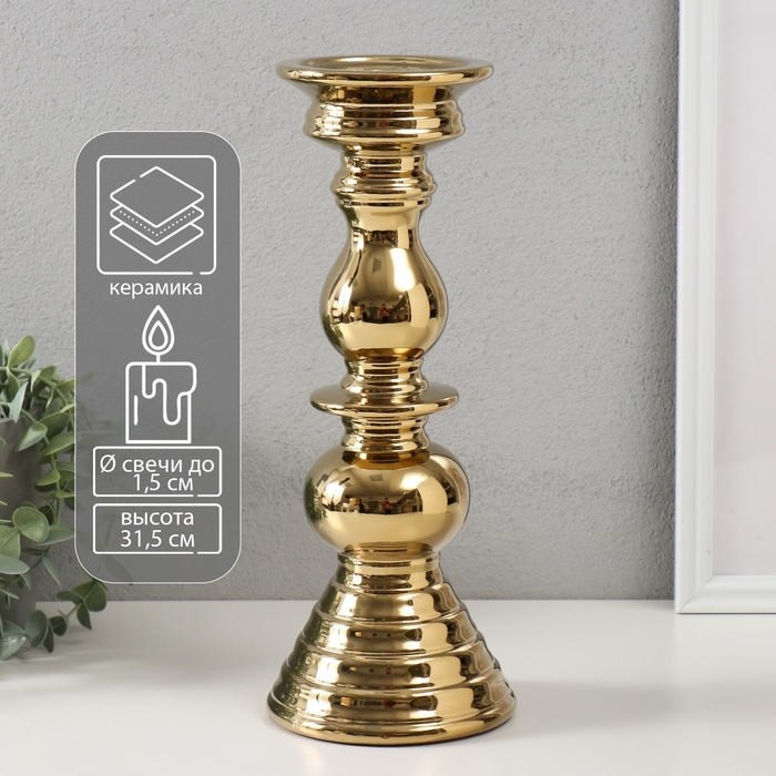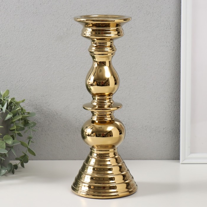 Подсвечник керамика на 1 свечу "Элегант" d=1,5 см золото 12х12х31,5 см