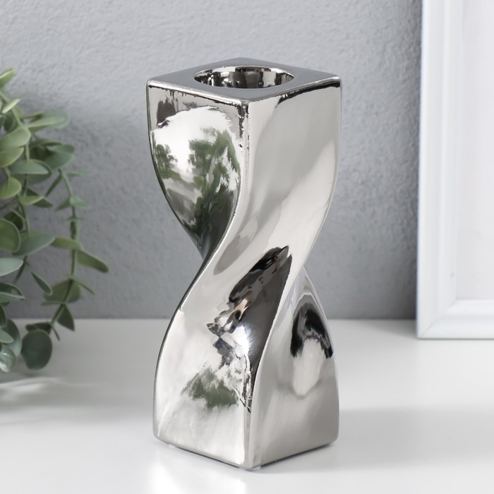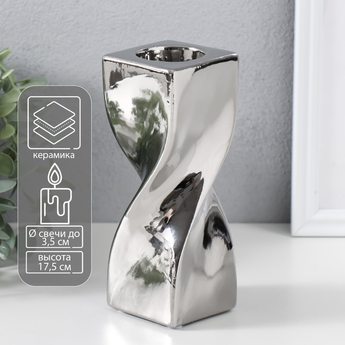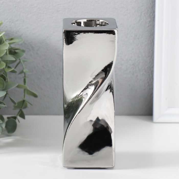 Подсвечник керамика на 1 свечу "Изгиб" d=3,5 см серебро 6,5х6,5х17,5 см
