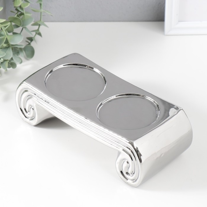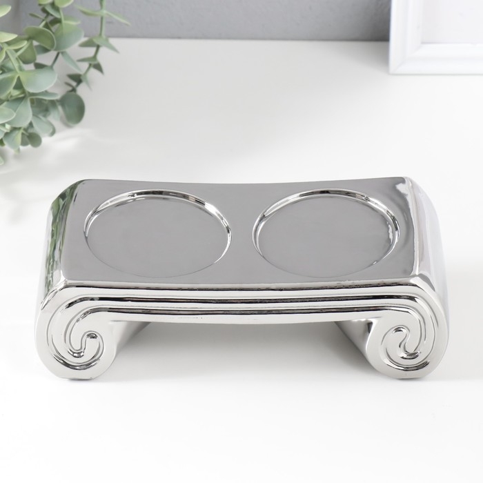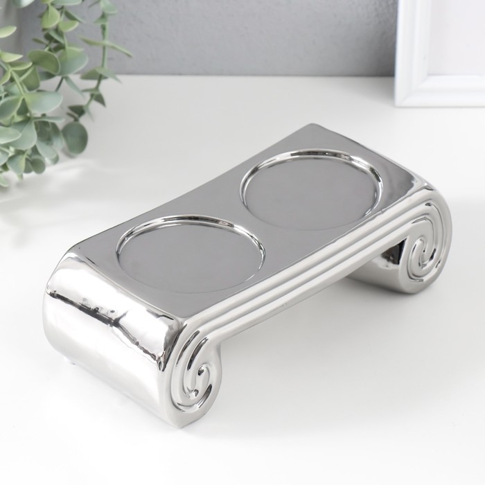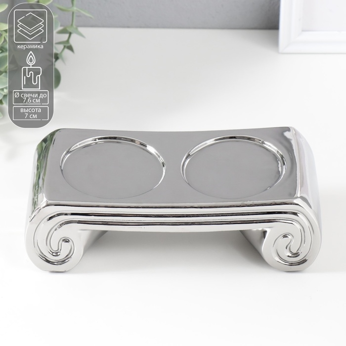 Подсвечник керамика на 2 свечи "Греция" d=7,5 см серебро 22,5х10х7 см