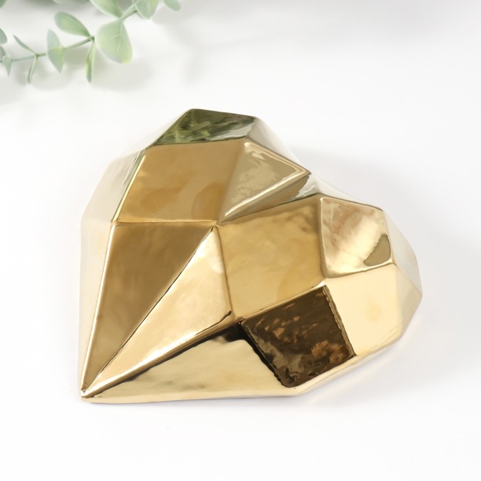 Сувенир керамика "Сердце 3D грани" золото 15х15х5 см