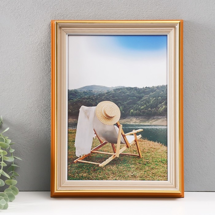 Фоторамка пластик формат А4 "Стилиани" бежевая с золотой обводкой 4,8х26х34,5 см