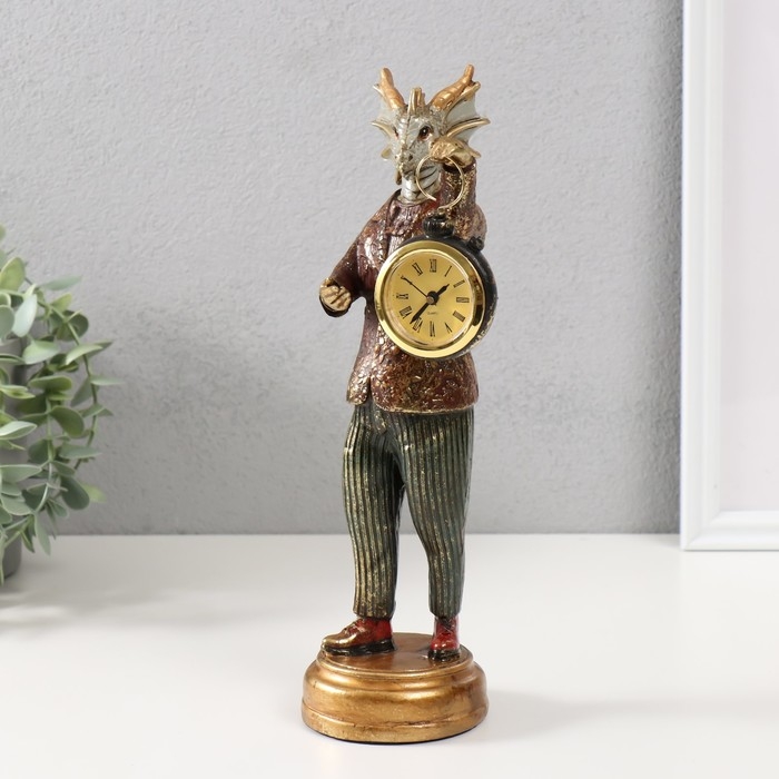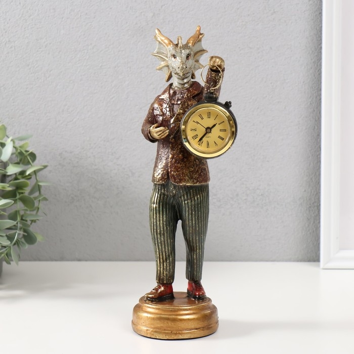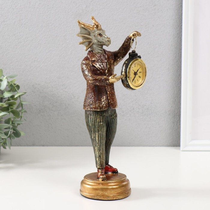 Сувенир полистоун с часами "Золотистый дракон" 9,5х8,5х28 см