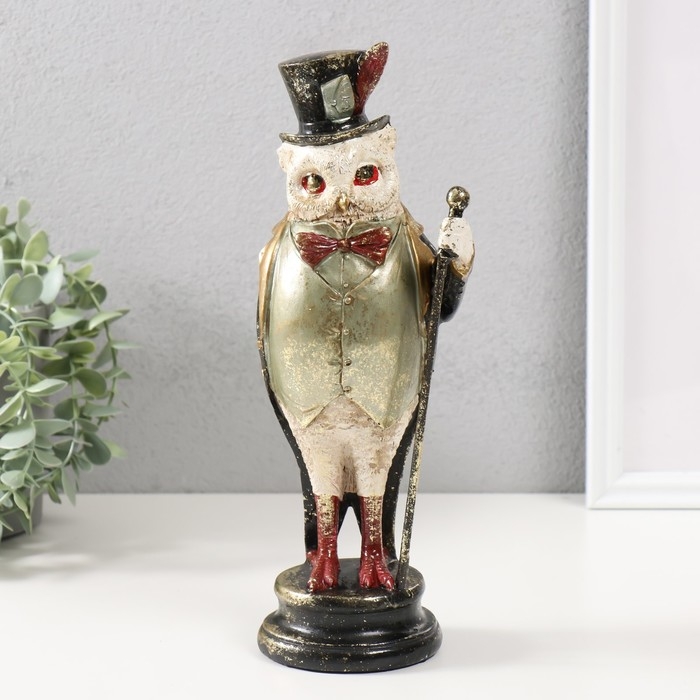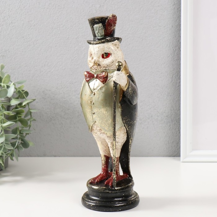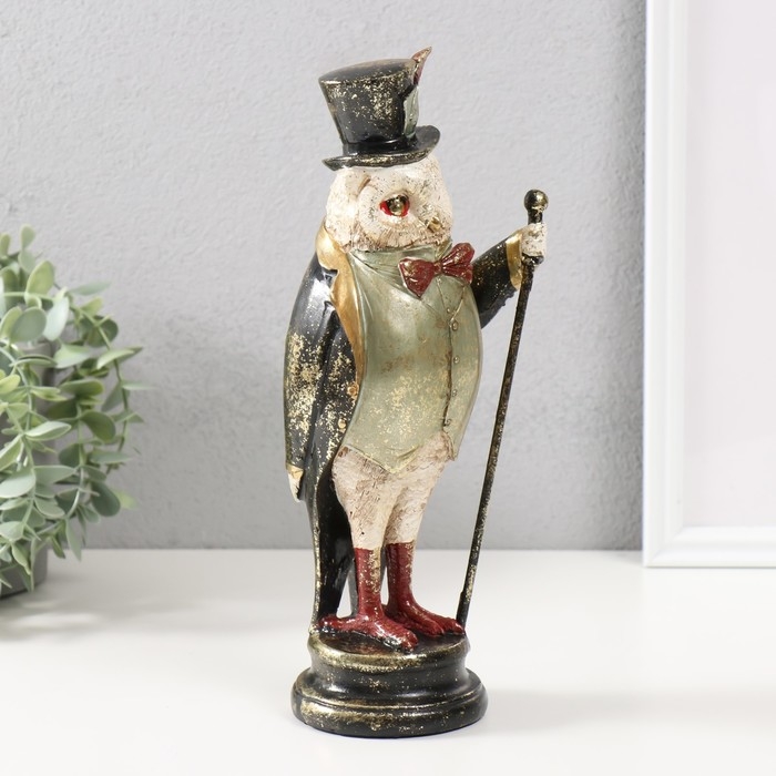 Сувенир полистоун "Филин в цилиндре с пером, с тростью" 12х10х30 см