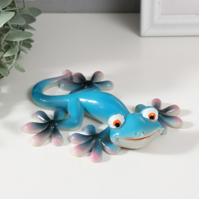 Сувенир полистоун "Маленький геккон" синий 13х11х3 см