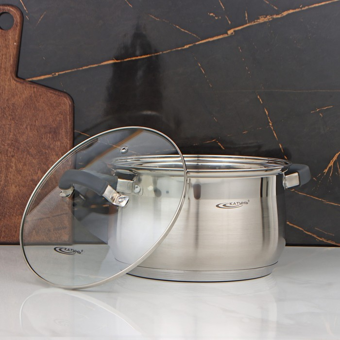 Кастрюля «Ирида», 5,2 л, d=22 см, стеклянная крышка, капсульное дно, индукция