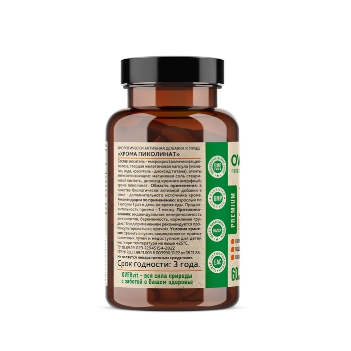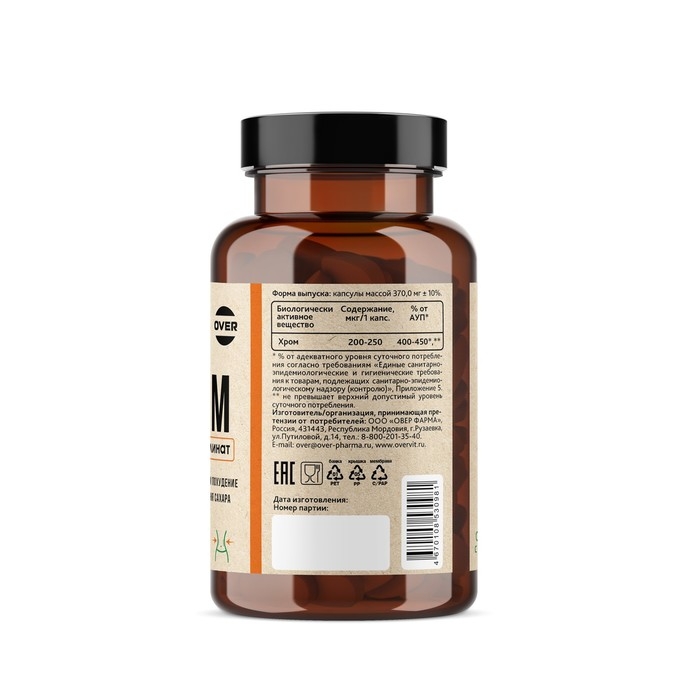 Носитель - микрокристаллическая целлюлоза, твердая желатиновая капсула (желатин, вода, краситель - диоксид титана), агенты антислеживающие: магниевая соль стеариновой кислоты, диоксид кремния аморфный; хрома пиколинат.