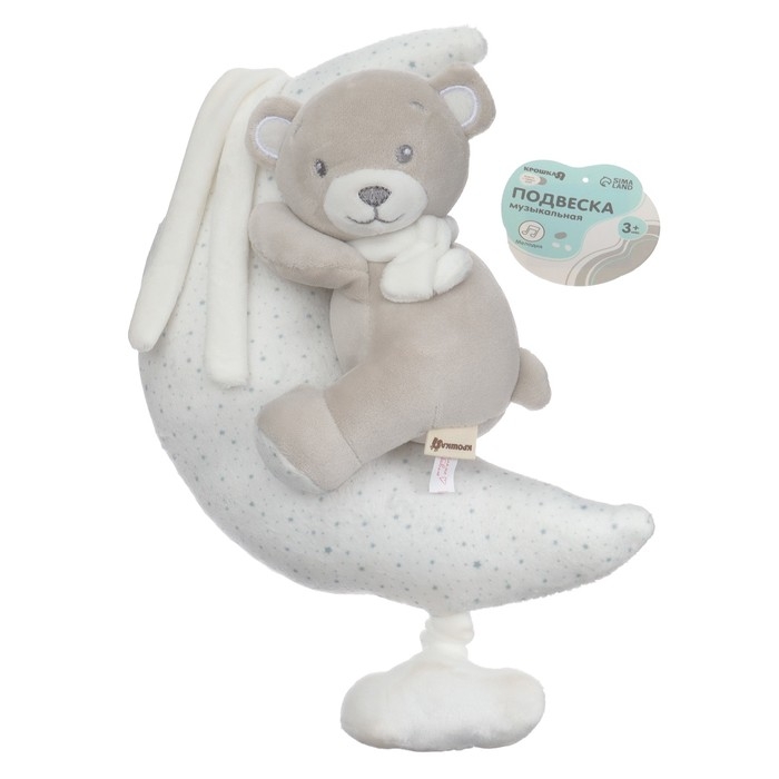 Подвеска музыкальная «Серый мишка», заводная, с погремушкой, на кроватку, коляску, Крошка Я
