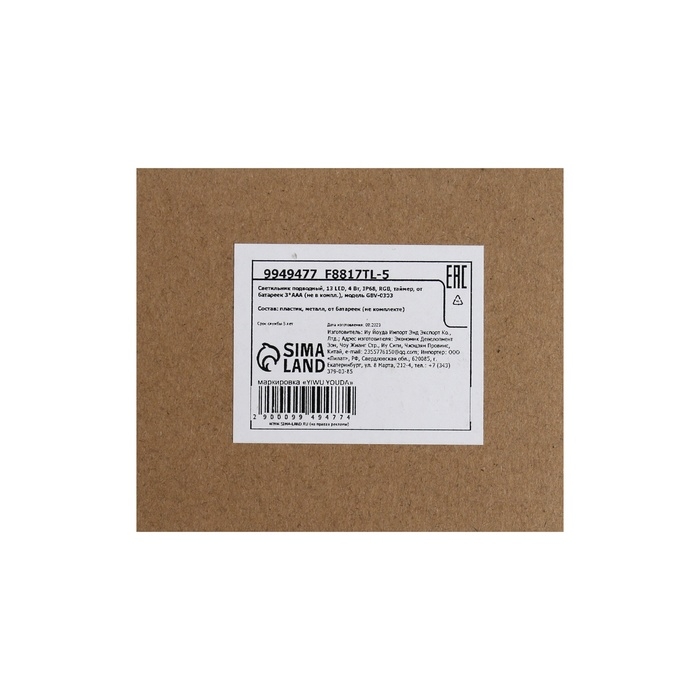 Светильник подводный, 13 LED, 4 Вт, IP68, RGB, таймер, от батареек 3*ААА (не в компл.)