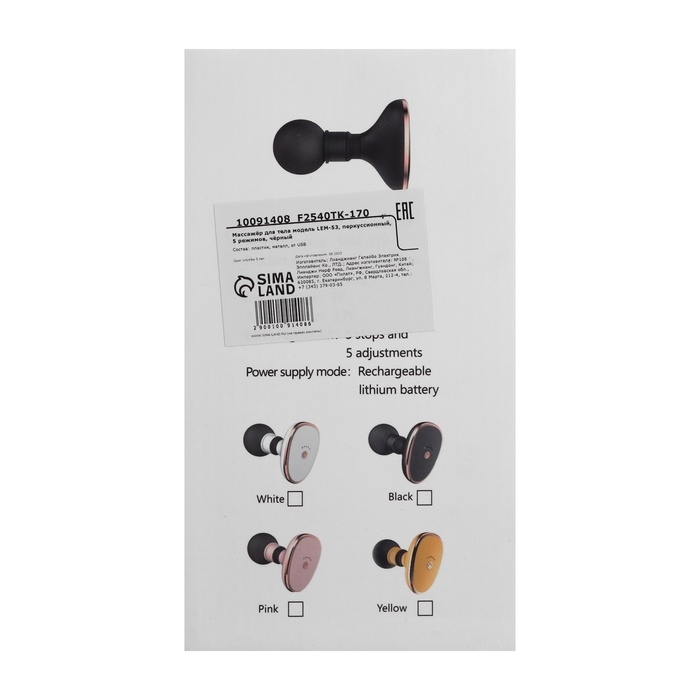 Массажёр для тела LEM-53, перкуссионный, 5 режимов, белый