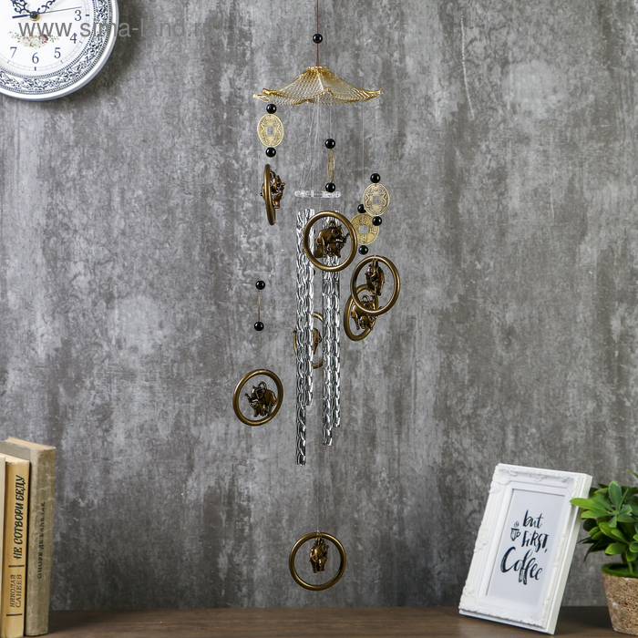 Музыка ветра пластик "Слон в круге" 4 трубки 7 фигурок 70 см