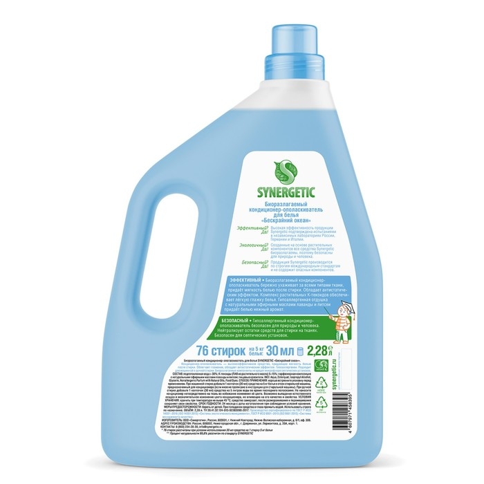 Кондиционер-ополаскиватель для белья SYNERGETIC "Бескрайний океан",биоразлагаемый, 2,28 л