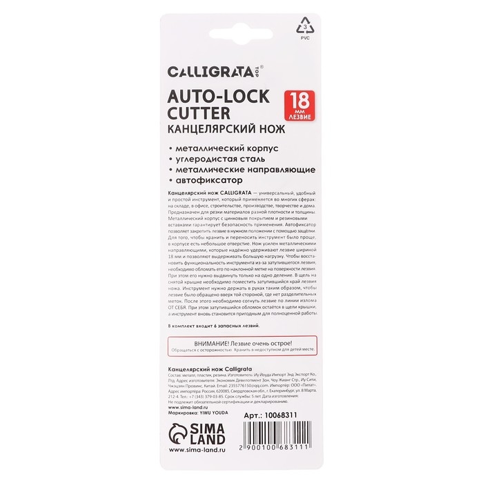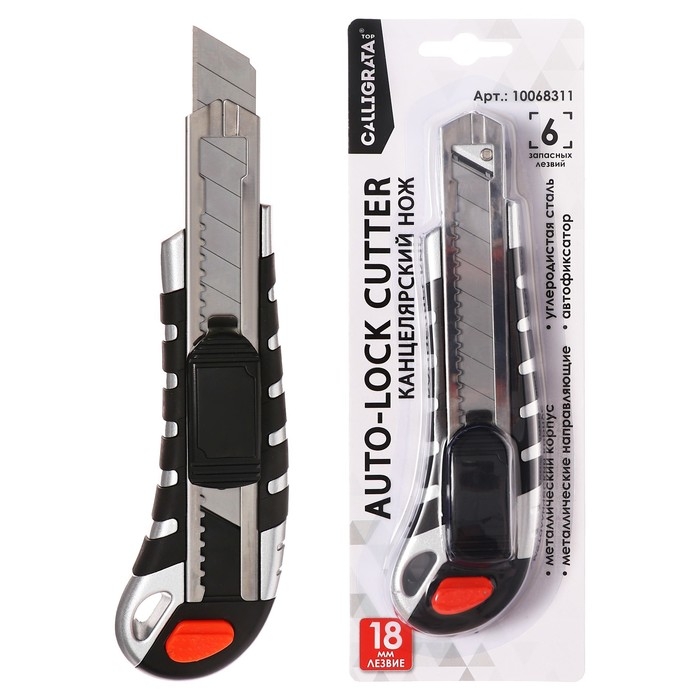 Нож канцелярский 18мм, металлический, 6 штук лезвий, Zinc-alloy, TOP