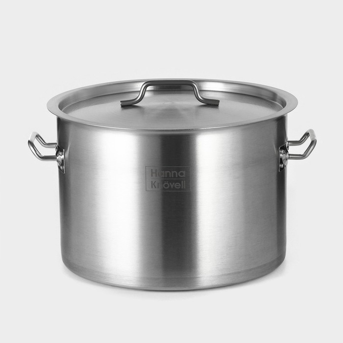 Кастрюля из нержавеющей стали Hanna Knövell, 19 л, d=32 см, h=22 см толщина 0,8 мм, дно ТРС, толщина дна 4,4 мм, 201 сталь, металлическая крышка, индукция