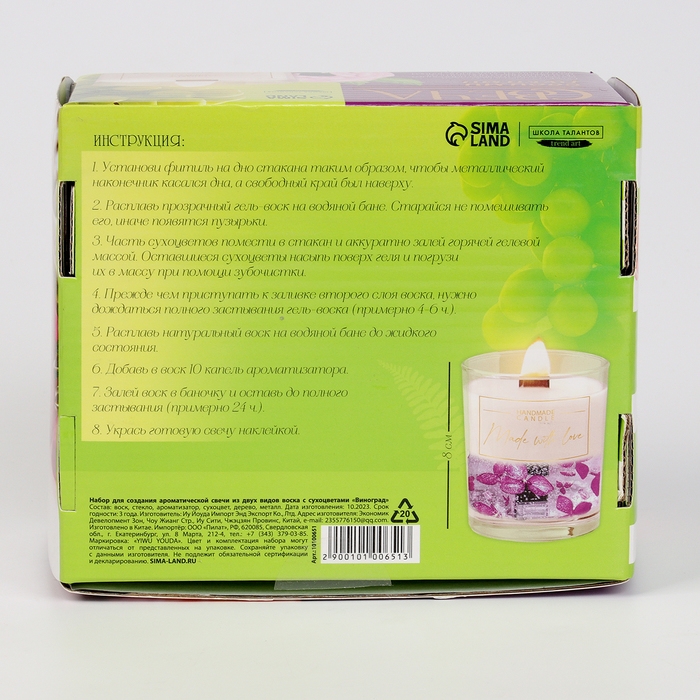 Свеча своими руками. Создание ароматической свечи с сухоцветами «Виноград», набор для творчества