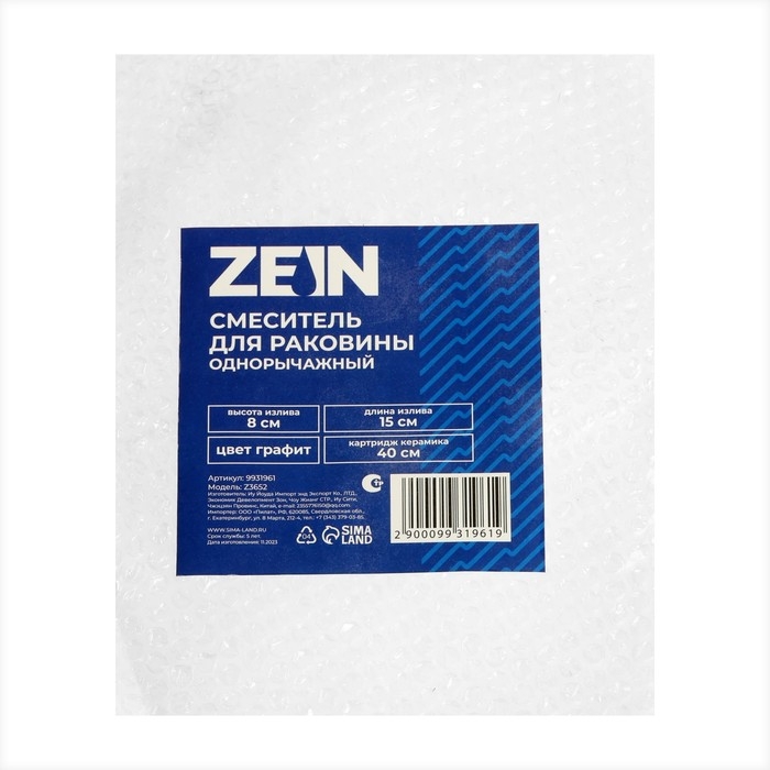 Смеситель для раковины ZEIN Z3652, однорычажный, высота излива 8 см, ABS-пластик, графит