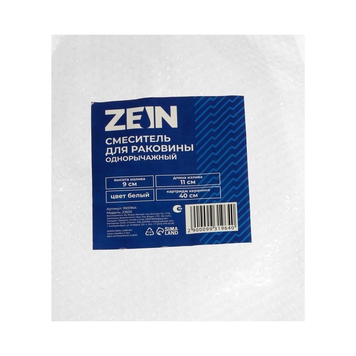 Смеситель для раковины ZEIN Z3655, однорычажный, высота излива 9 см, ABS-пластик, белый
