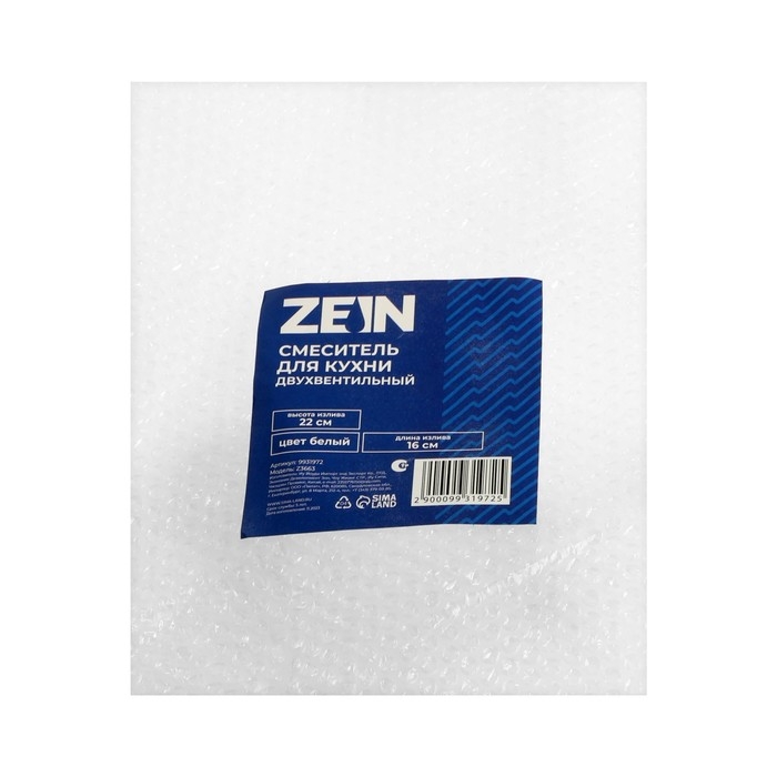 Смеситель для кухни ZEIN Z3663, двухвентильный, высота излива 22 см, ABS-пластик, белый