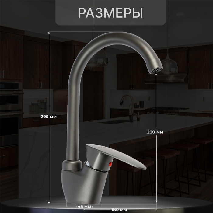 Смеситель для кухни ZEIN Z3667, однорычажный, высота излива 23 см, ABS-пластик, графит