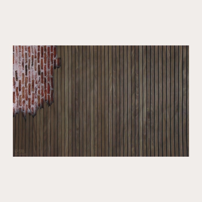 Фотофон винил "Деревянные рейки и кирпич" 120х80 см