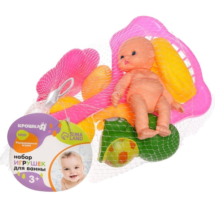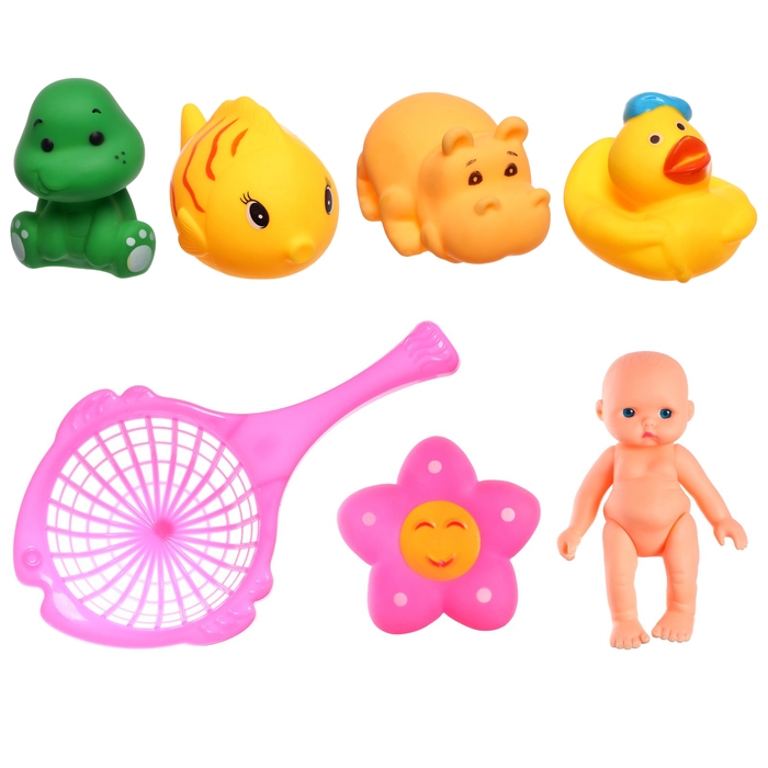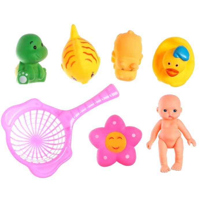 Набор резиновых игрушек для ванны «Игры с пупсиком», 7 шт, сачок, Крошка Я