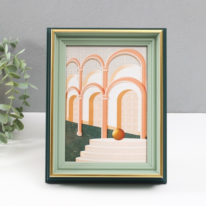 Фоторамка пластик 13х18 см "Стилиани" светло-зеленая с золотом 4,8х17,5х23 см