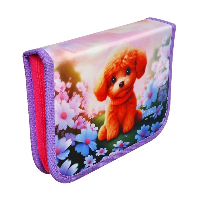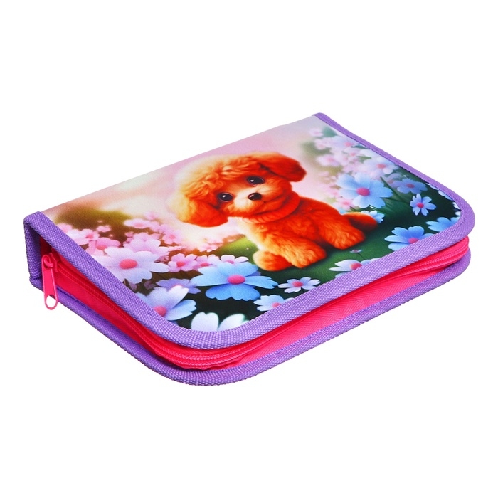 Пенал 3 секции, вкладка внутри, 140 х 210 х 40 мм, тканевый, Calligrata TOP Block "Милый пушистик"
