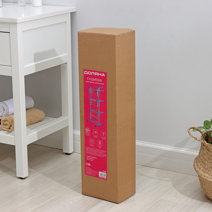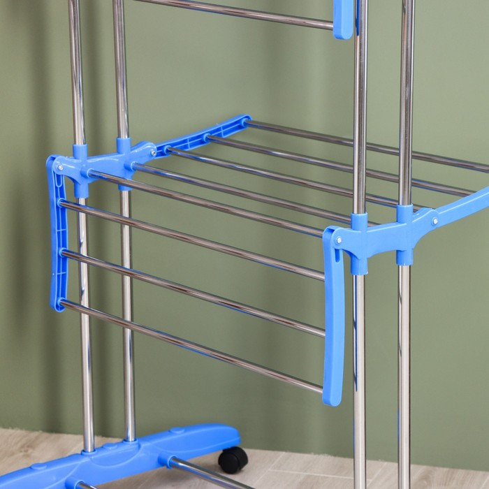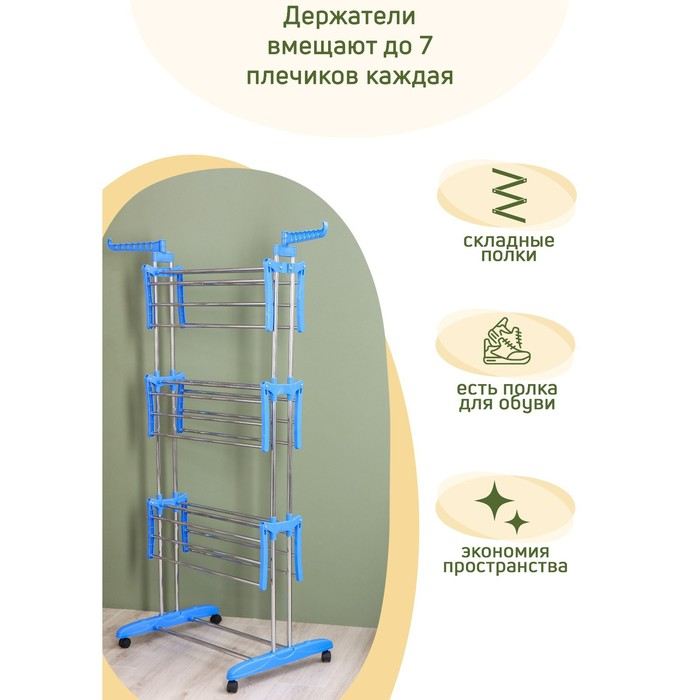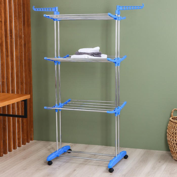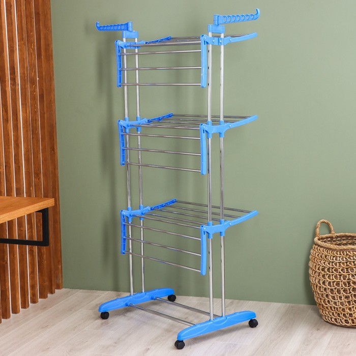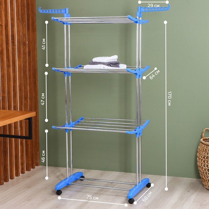 Сушилка для белья напольная 3-х уровневая Доляна, 75(126)×64×170 см, рабочая длина 16 м, на колёсах, нержавеющая сталь