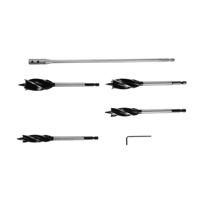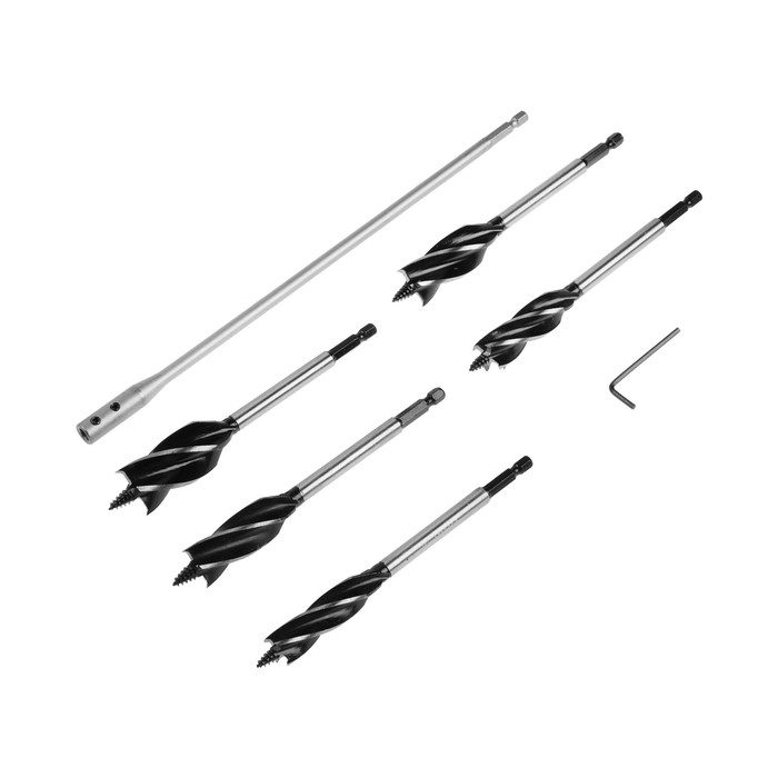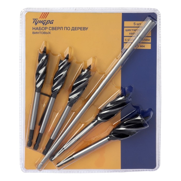 Набор сверл по дереву винтовых ТУНДРА, шестигранный хвост., с удлинителем, 16-25 мм, 5 шт.