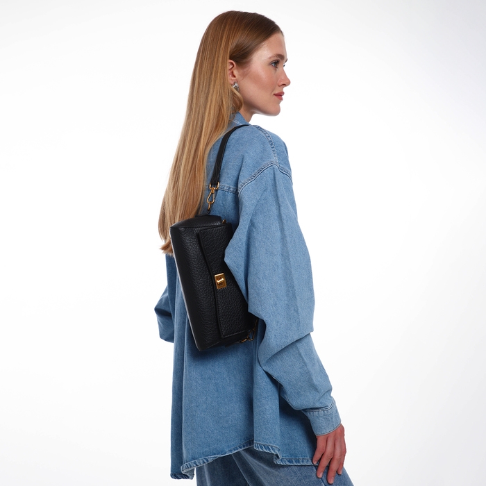 Сумка женская мессенджер на клапане TEXTURA, средний размер, цвет чёрный