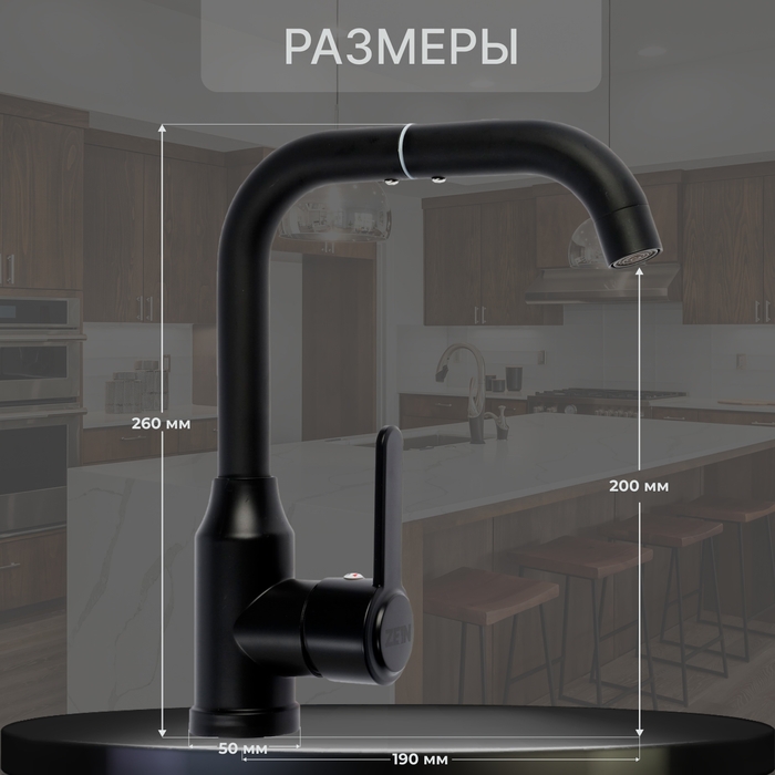 Смеситель для кухни ZEIN Z3702, однорычажный, поворотный излив высотой 20 см, черный