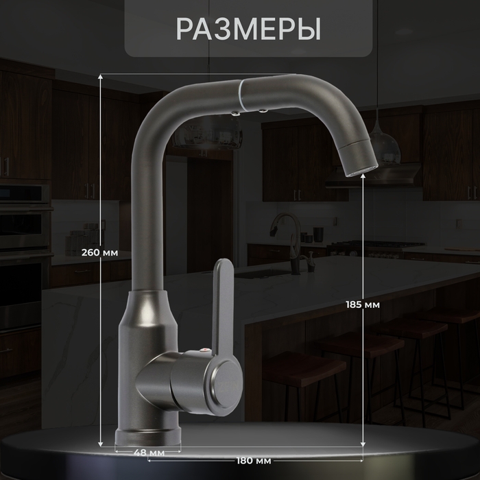 Смеситель для кухни ZEIN Z3703, поворотный излив высотой 20 см, ABS-пластик, графит