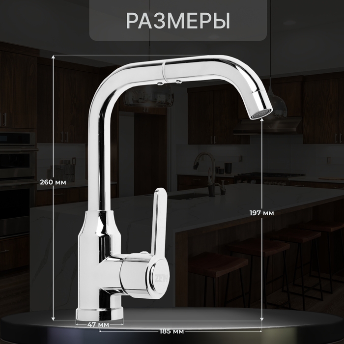 Смеситель для кухни ZEIN Z66350352, гибкий излив, картридж 40 мм, двухрежимный аэратор, хром