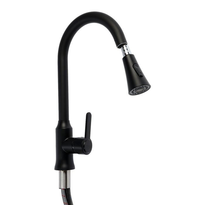 Смеситель для кухни ZEIN Z3708, вытяжной излив, аэратор 2 режима, черный