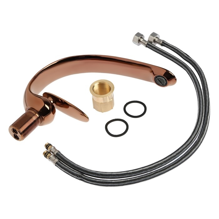 Смеситель для раковины ZEIN Z3880, однорычажный, интерьерный, высота 18см, латунь, rose gold