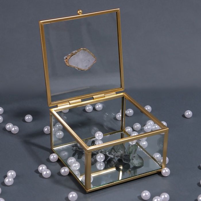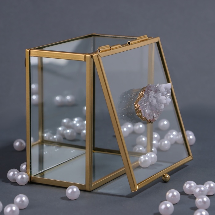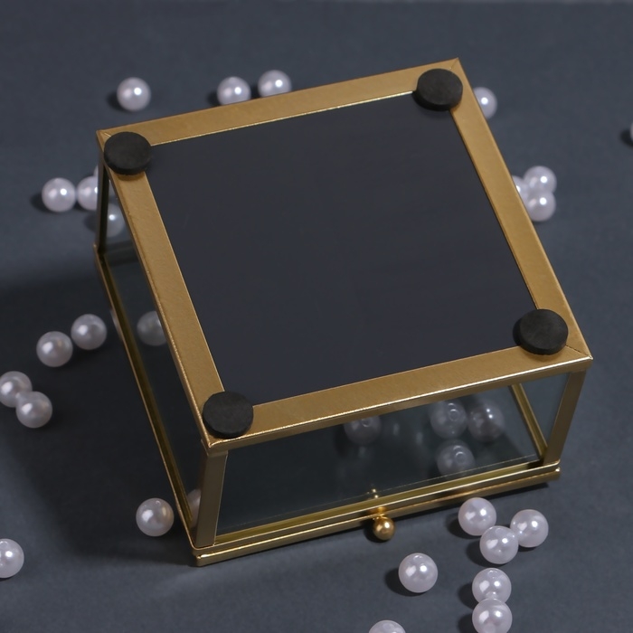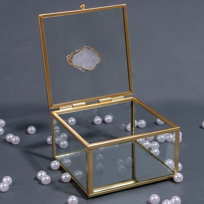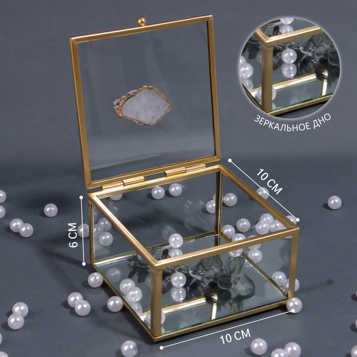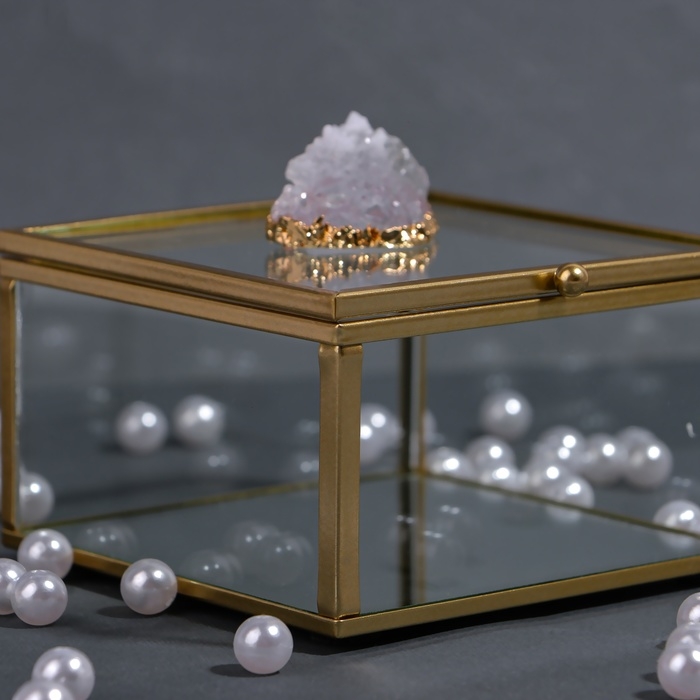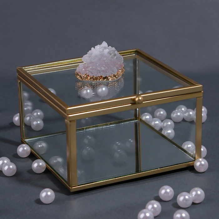 Органайзер для хранения «MOUNTAINS», с крышкой, стеклянный, с зеркальным дном, 1 секция, 10 × 10 × 6 см, цвет прозрачный/медный