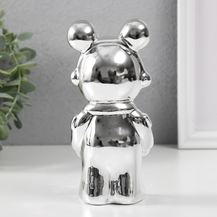 Сувенир керамика "Мишка-космонавт" серебро 8х6х18 см