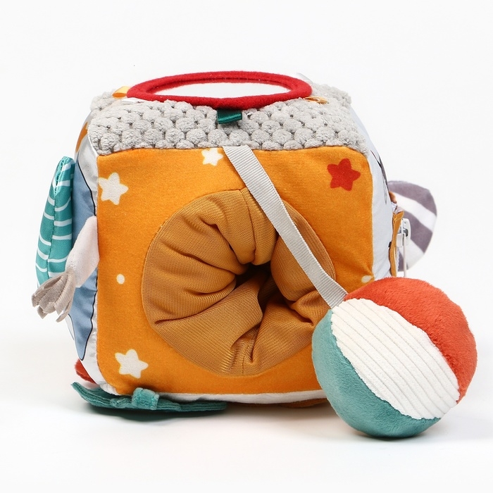 Игровой кубик выполнен из мягких материалов, что обеспечивает безопасность и комфорт новорожденных и детей до 3 мес.