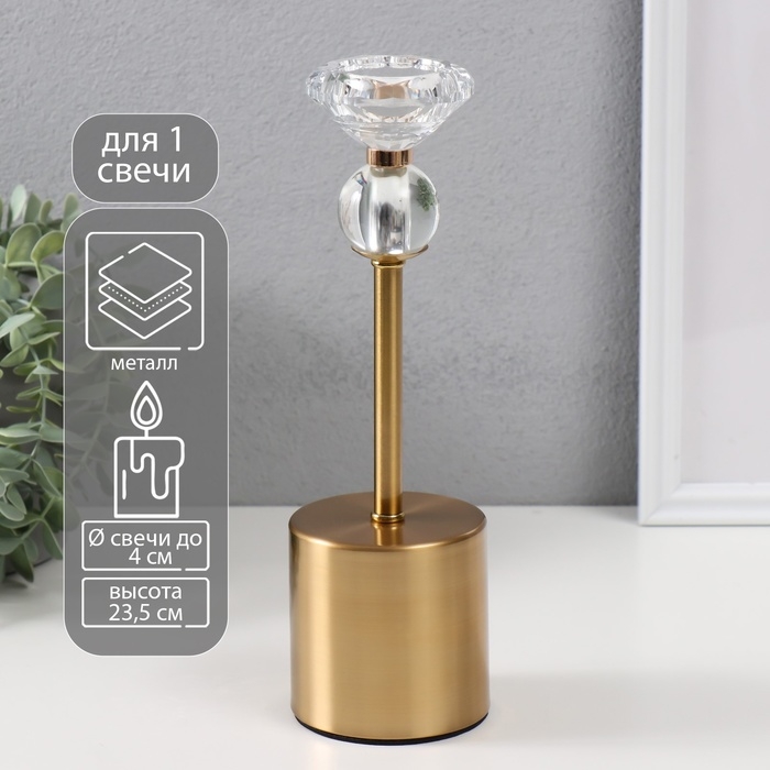 Подсвечник металл на 1 свечу d=4 см "Ниса" золото 8х8х23,5 см