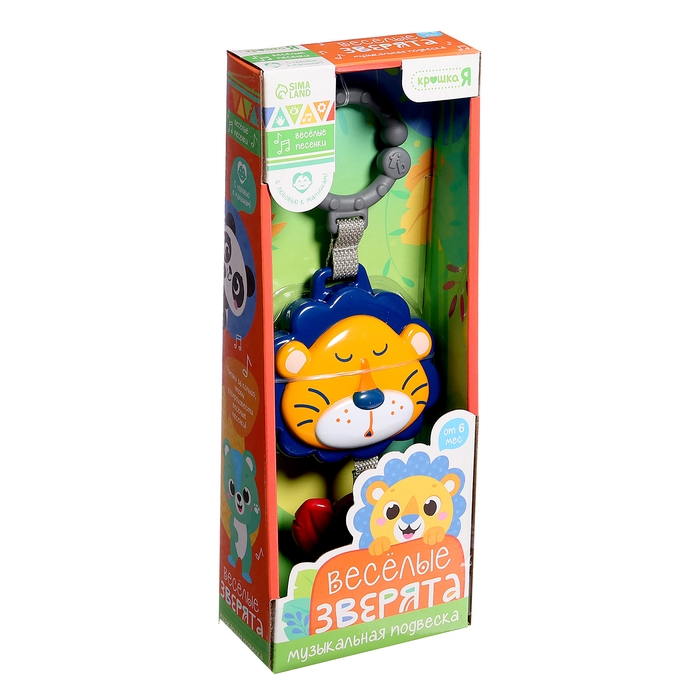Музыкальная подвеска «Весёлые зверята: Лев», ручка для крепления, звук