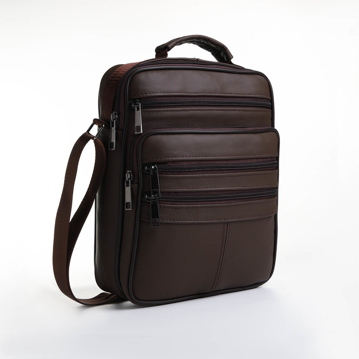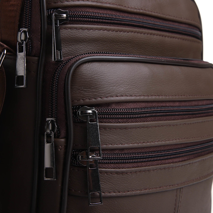 Сумка мужская на молниях, длинный ремень, цвет коричневый