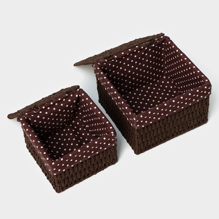 Набор интерьерных корзин ручной работы с крышкой LaDо́m, 2 шт, размер: 20×20×15 см, 25×25×18 см