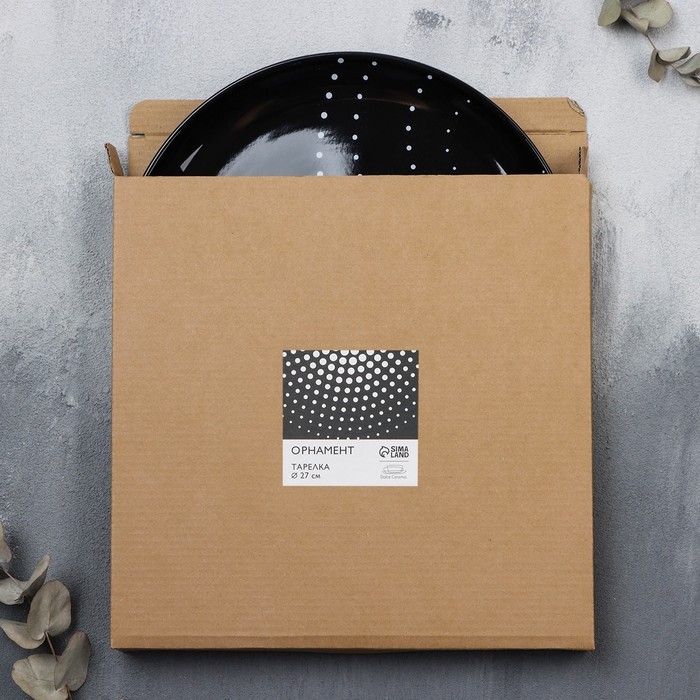 Тарелка керамическая «Орнамент», 27 см, цвет чёрный
